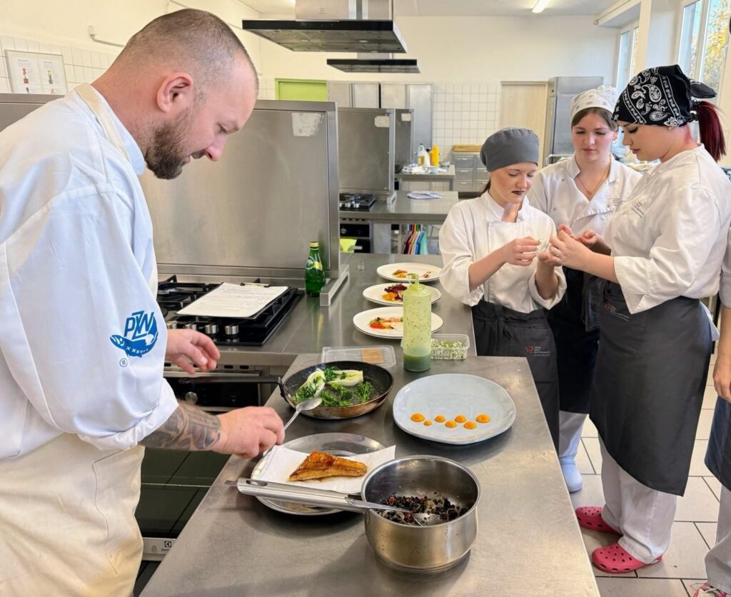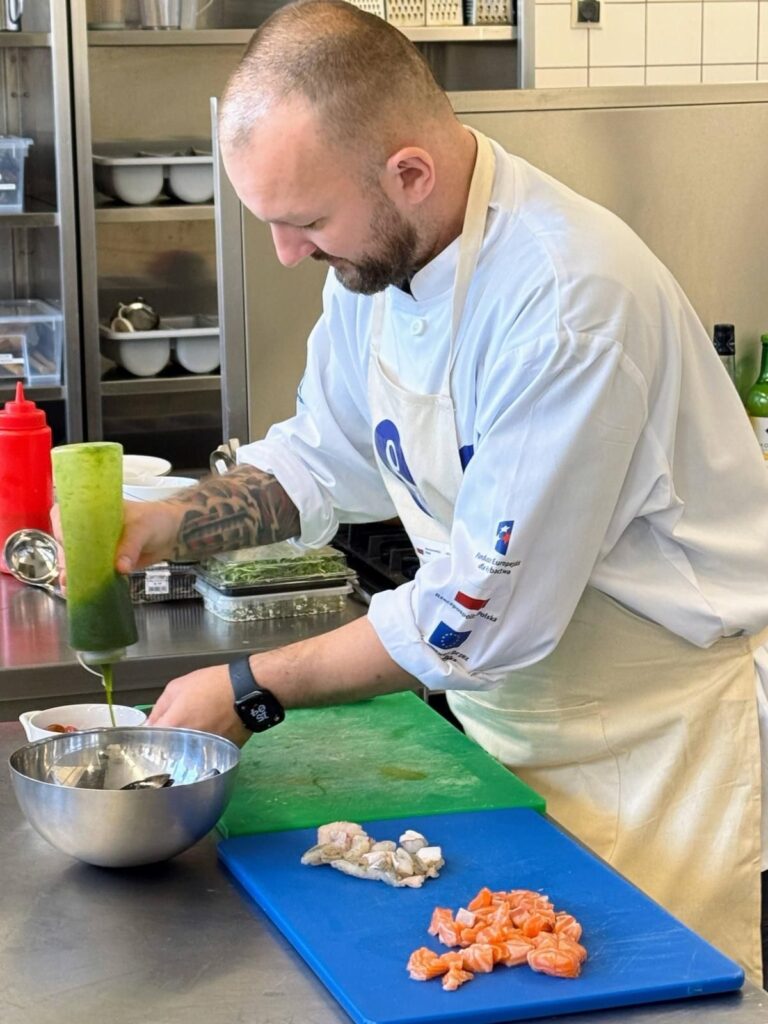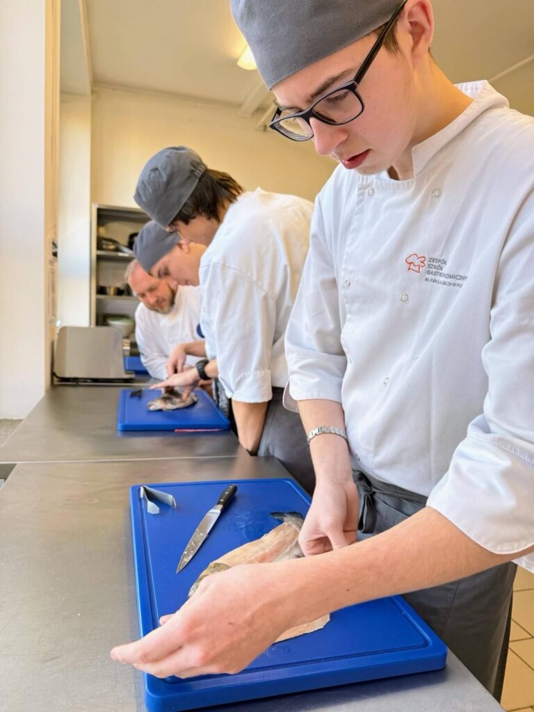 Drugi dzień realizacji projektu SONAR w naszej szkole dostarczył uczniom wielu nowych doświadczeń kulinarnych. Tym razem uczestnicy wzięli udział w specjalistycznym szkoleniu poświęconym przygotowywaniu potraw z ryb, prowadzonym przez doświadczonych kucharzy i edukatorów branży gastronomicznej.