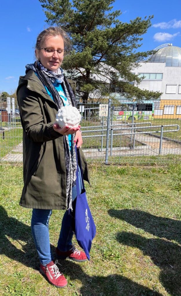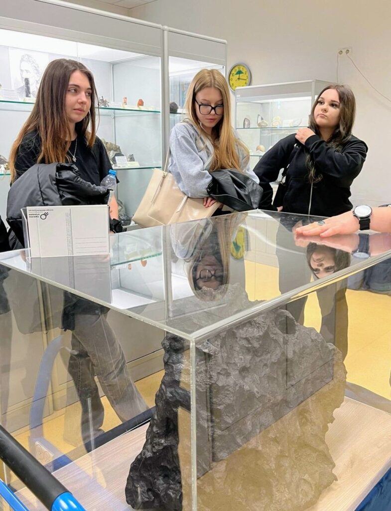 Na koniec przygody z nauką dotarliśmy do Muzeum Ziemi. 261 kg „żelaznej wagi” – to największy meteoryt Memorss. Spadł na Morasko wraz z innymi fragmentami bolidu, który 5 tysięcy lat temu po spotkaniu z atmosferą ziemską rozpadł się na części i dotarł do powierzchni naszej planety. Widzieliśmy też inne okazy pochodzące z tego upadku. Niektóre z nich o imponujących rozmiarach, żelazowe lub kamienne a także nieco mniejsze fragmenty przybyszów z kosmosu. Oglądaliśmy również minerały i skamieniałości. Po tej dawce teorii obejrzeliśmy film Impakt Moraski i Epoka Lodowcowa, który przeniósł nas w inny wymiar.